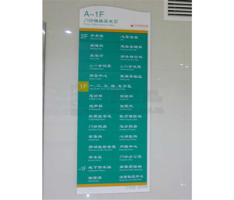 服務內容:醫(yī)院樓宇標識,道路指引標識,醫(yī)院戶外總圖,樓層索引,平面分布圖,專家介紹欄,宣傳欄,功能室,樓層號,科室名稱牌等