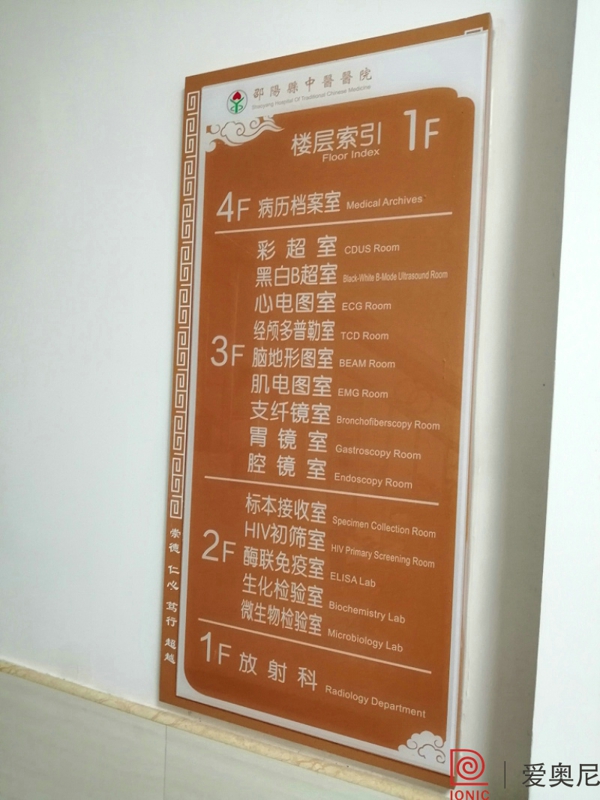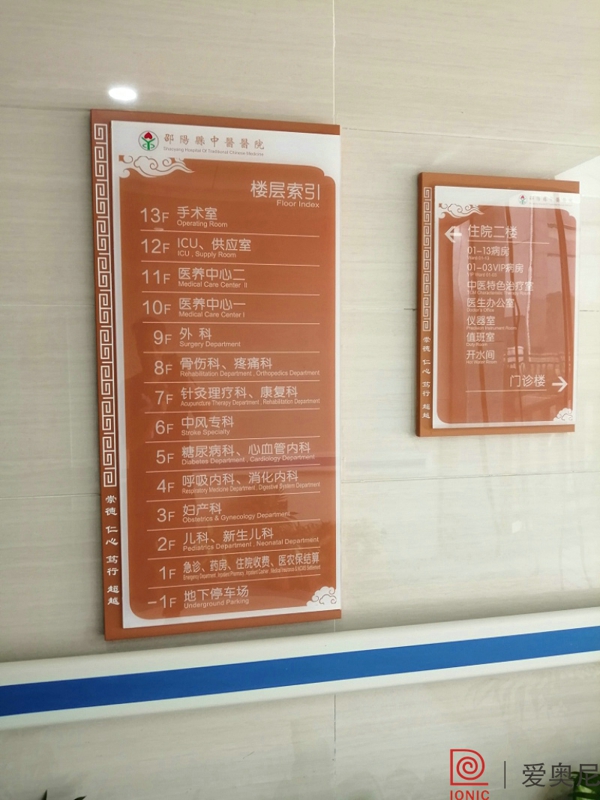 客戶有醫(yī)院標(biāo)識設(shè)計制作需求,需要找專業(yè)的醫(yī)院標(biāo)識設(shè)計公司。湖南愛奧尼標(biāo)識工程有限公司是一家標(biāo)識設(shè)計、制作公司,擁有15年標(biāo)識設(shè)計經(jīng)驗,100多名專業(yè)生產(chǎn)團隊,獲得ISO9001質(zhì)量管理體系認(rèn)證等數(shù)10項榮譽資質(zhì)證書,電話:400-0731-050